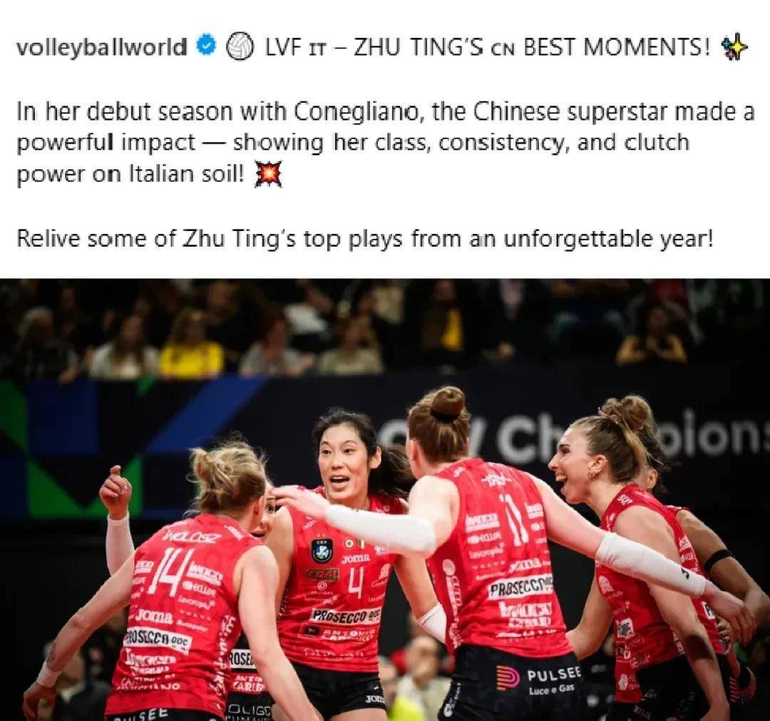 赛后,国际排联专门发了一篇文章夸朱婷:“朱婷这赛季在科内利亚诺打球的时候,那表现真是没话说啊!实力超强,发挥还特别稳,关键时候还能决定比赛走向,不愧是中国的超级明星!”文章还配上好几段朱婷在意甲赛场上的高光时刻,给全世界的粉丝们看看这位前奥运最有价值球员有多厉害。