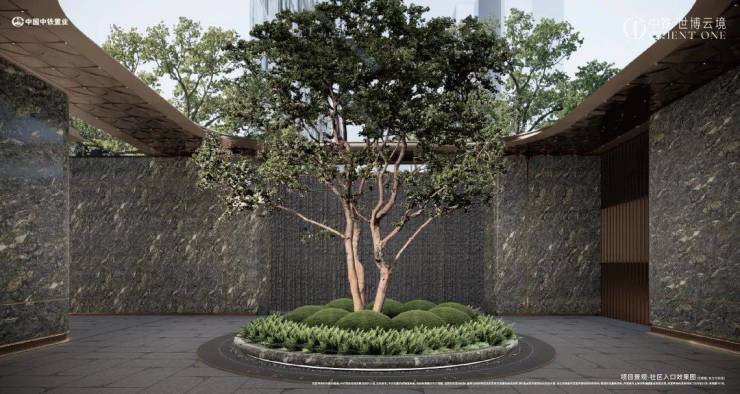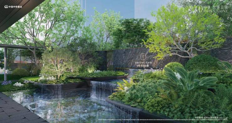 跌水景墙,跌级层次种植池搭配铁冬青乔木,自然花境增添野趣,为业主的归家之路增添几分意趣。