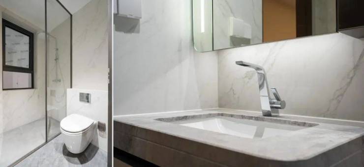 白雪公主透光云石的玄关柜面、内置消杀机的鞋柜、圆弧吊顶和感应灯、普罗旺斯水晶灰岩板背景墙以及地面拼花设计、定制墙纸、全屋智能化系统,中铁世博云境的品质细节武装到了牙齿!如此豪华的精装阵容和精工品质,哪个购房者能不心动?