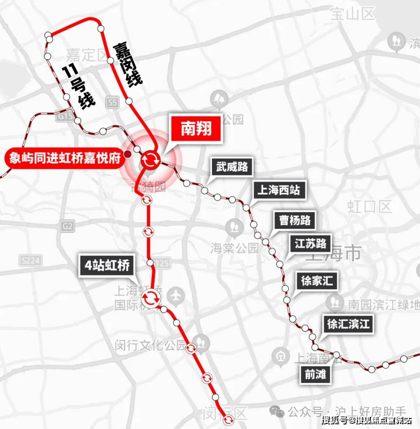 ,向东可以直达真如、徐家汇、徐汇滨江和前滩等市区多个CBD,向西可以直达嘉定新城。