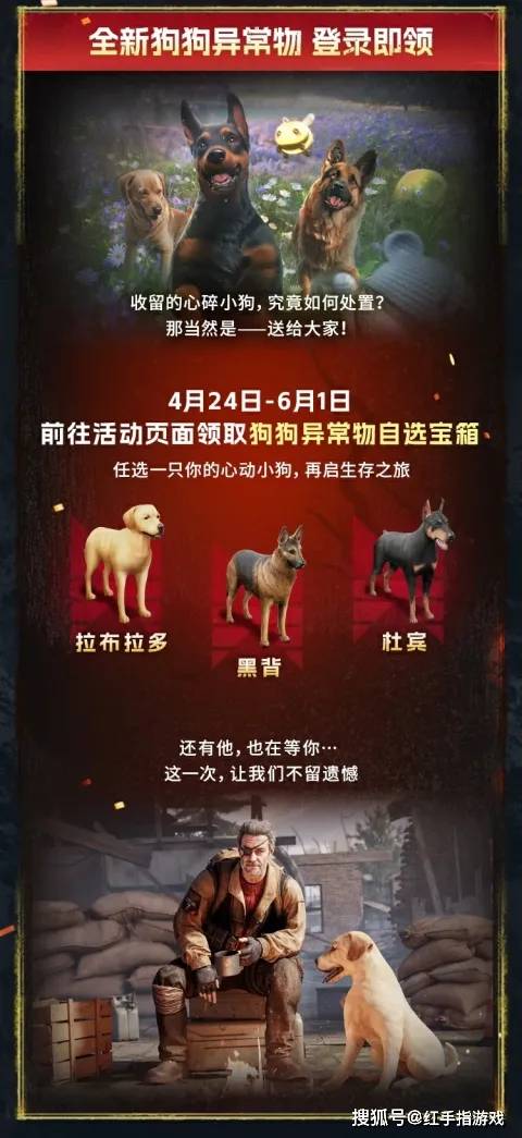 免费领取伙伴:登录游戏即可前往活动页面领取「狗狗异常物自选宝箱」,杜宾、拉布拉多、黑背等品种任选,每只小狗都有独特外观与互动动作;